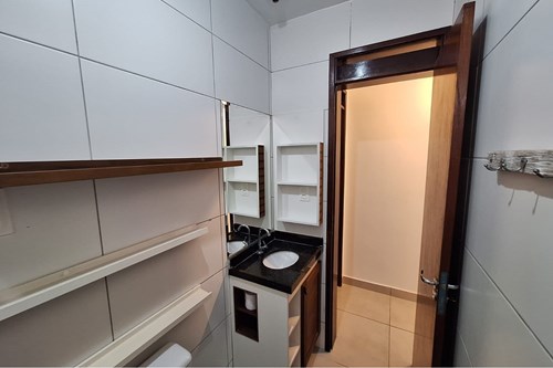 ✔️ Banheiros com gabinetes modernos, espelhos, nichos e box em vidro temperado